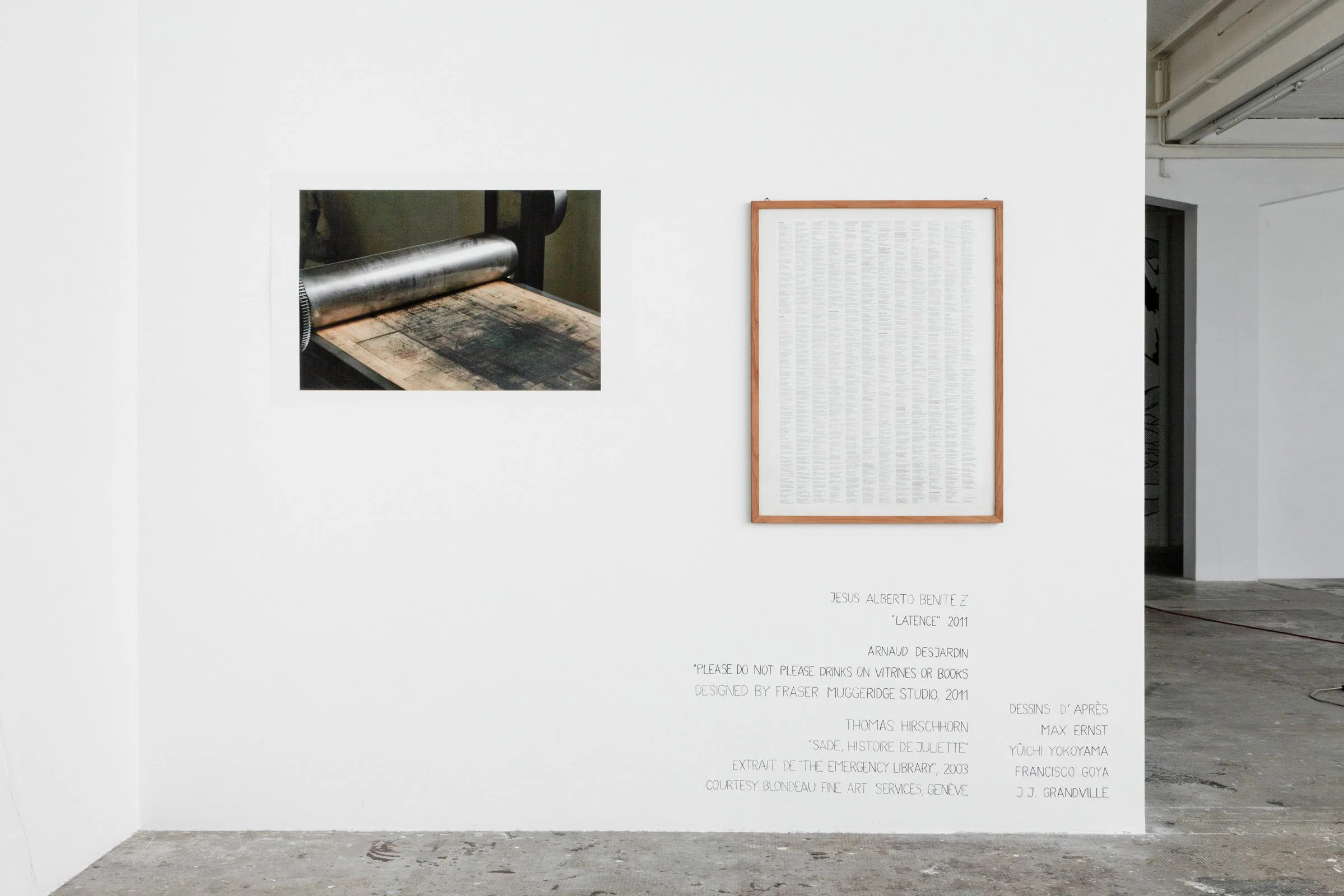 Avec : Matthew Bakkom, Erica Baum, Lætitia Benat, Jesus Alberto Benitez, Alexandrine Boyer, Clegg & Guttmann, Claude Closky, Moyra Davey, Mario Del Curto, Arnaud Desjardin, Marina Faust, Vianney Fivel, Mathis Gasser, Rodney Graham, Marie-Ange Guilleminot, Thomas Hirschhorn, Ana Jotta, Ernst Heinrich Landrock et Rudolf Franz Lehnert, John Latham, Louise Lawler, Pierre Leguillon, Urs Lüthi, Benoît Maire, Ella Maillart, Jean-Baptiste Maître, Rémy Markowitsch, Barry McGee, Ceel Mogami de Haas, Aurélien Mole, Jean-Luc Moulène, Bruce Nauman, Damián Navarro, Marylène Negro, John Philipps, Conny Purtill, Didier Rittener, Allen Ruppersberg, David Scher, Yann Sérandour, Maurice Tabard, Roman Signer, Jean-Luc Verna, Martina-Sofie Wildberger, Raphaël Zarka.